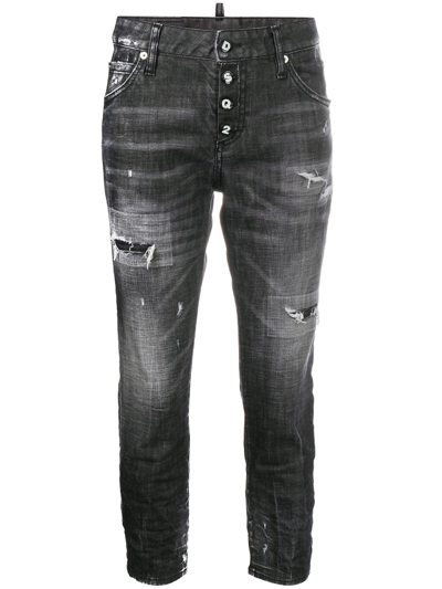 Cool Girl Cropped Distressed Denim Jeans In Black