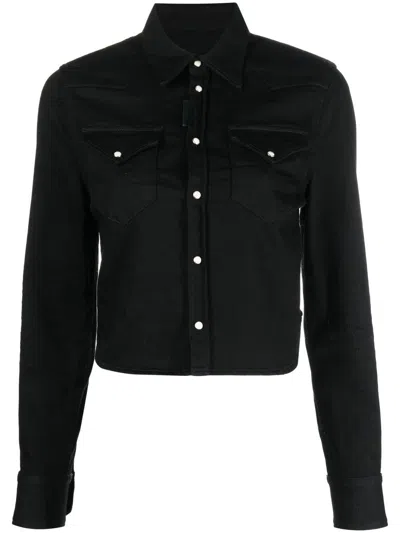 Stretch Denim Cropped Fit Western Shirt In Black