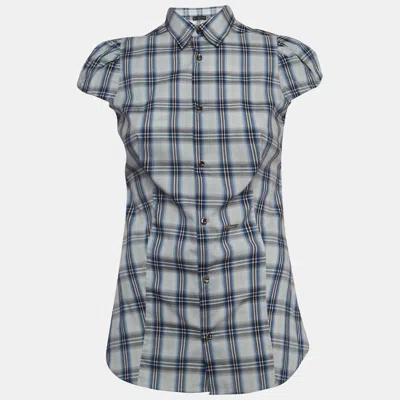 Pre-owned Blue Checked Cotton Buttoned Short Puff Sleeve Shirt M