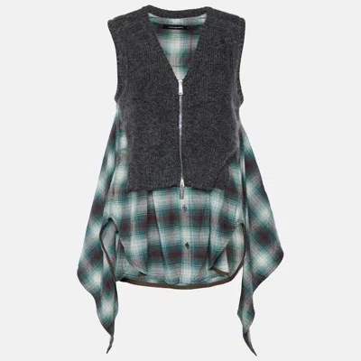 Pre-owned Green Checkered Cotton & Knit Overlay Sleeveless Shirt S In Grey
