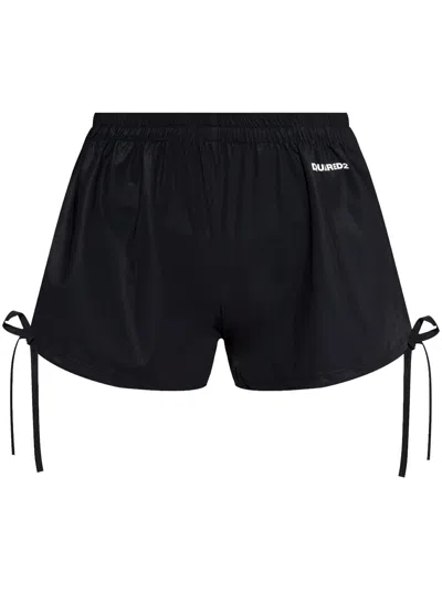 Icon-stripe Drawstring Shorts Featuring Ruched Detailing In Black