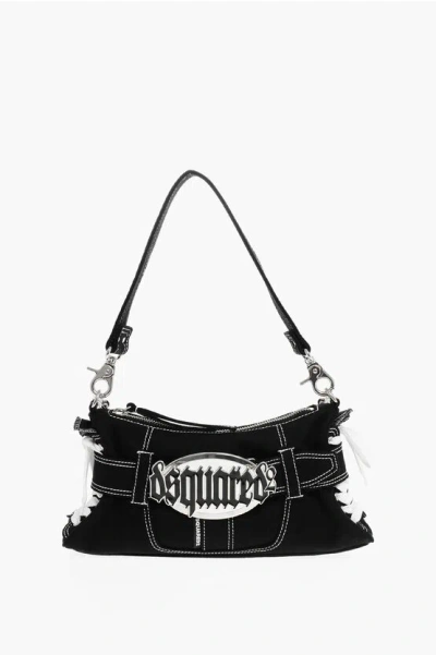 Canvas Hobo Bag With Logoed Buckle