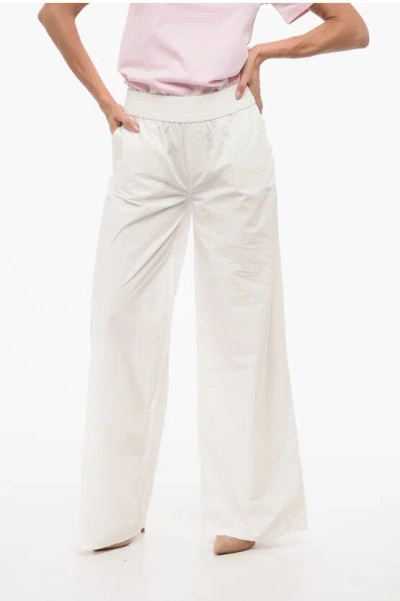 Wide Leg Pants With Logo Patch In Neutral