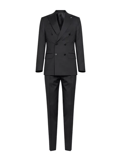 Brown Virgin Wool Positano Double-breasted Suit In Black