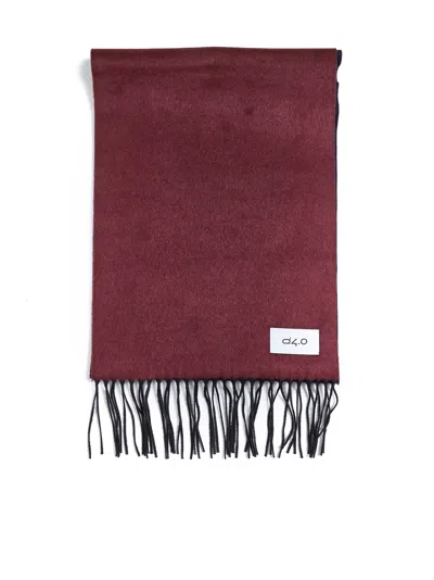 Burgundy And Blue Scarf With Fringes In Red