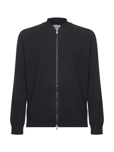 Blue Virgin Wool Knit Bomber-style Cardigan