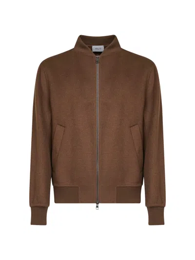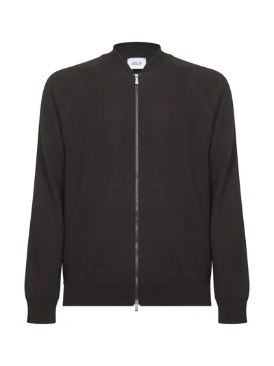 Brown Virgin Wool Knit Bomber-style Cardigan
