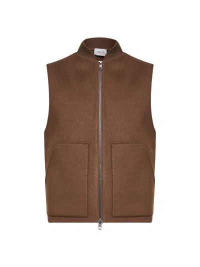 Brown Double Wool Vest In Animal Print
