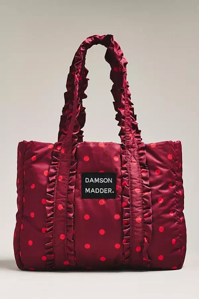 Polka Dot Frilled Tote Bag In Red
