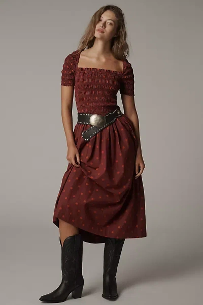 Malinda Smocked Long-sleeve Midi Dress In Red