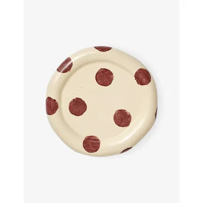 Butter Burgundy Spot Polka-dot Ceramic Saucer In Multi