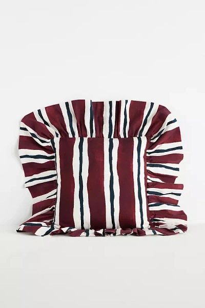 Off White Ruffle-trim Set Of Two Cotton Placemats In Red