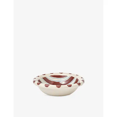 Stripe And Polka Mix Striped And Polka-dot Ceramic Serving Bowl In Brown