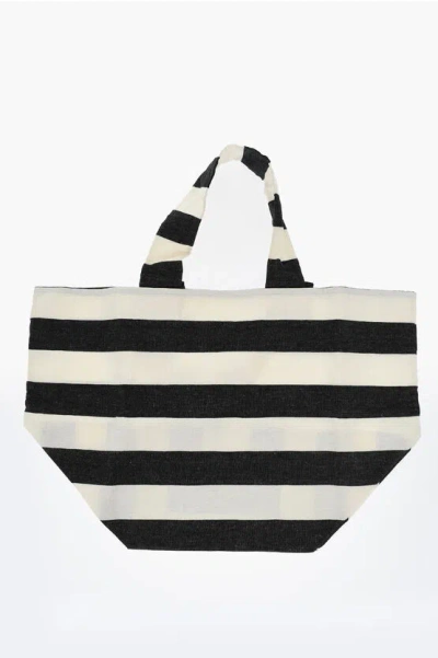 Awning Striped Linen Shpper Bag In Black