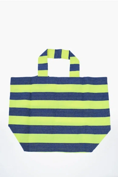 Awning Striped Linen Shpper Bag In Green