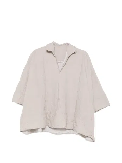 Crinkled-finish Polo-collar T-shirt In Neutral