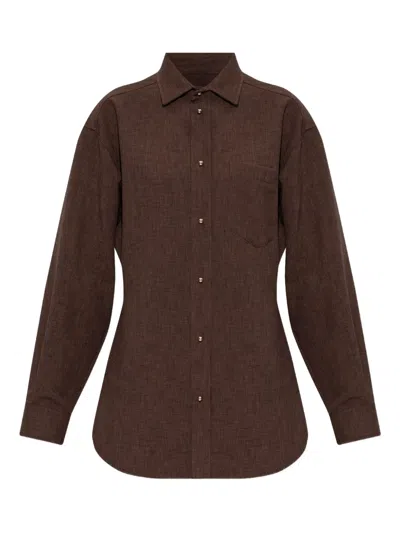 Ruched Tencel Denim Shirt With Structured Design In Brown