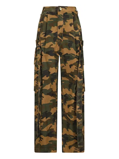 Frayed Hem Cotton Rosalind Cargo Pants With Logo-buttons In Neutral