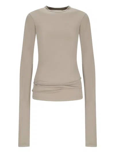 Ruched Tencel Denim Shirt With Structured Design In Brown