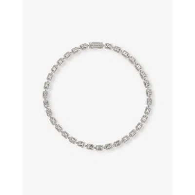 Mens Tennis 18ct White Gold-plated Stainless Steel, Brass And Pavé-stone Bracelet In Metallic