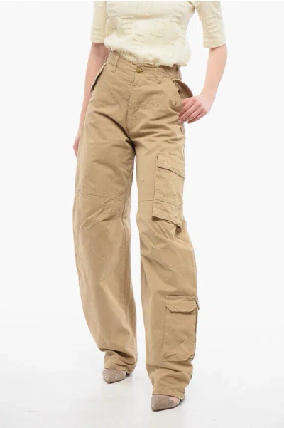 Frayed Hem Cotton Rosalind Cargo Pants With Logo-buttons In Neutral