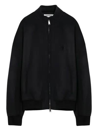 Wool Blend Loden Bomber Jacket With Embroidered Monogram In Black
