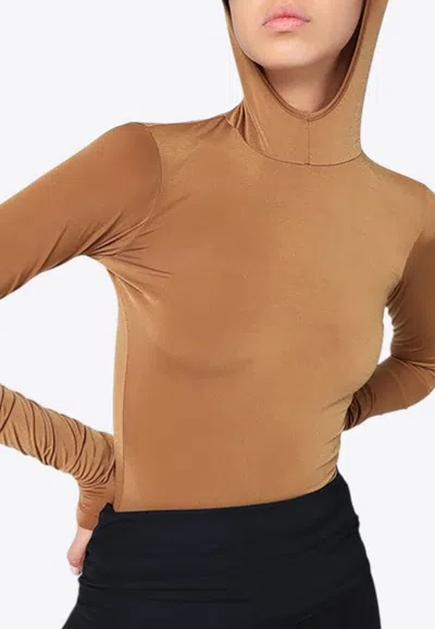 Billie Long-sleeved Fitted Top With Hood In Brown