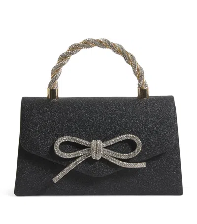 Kids' Glitter Diamanté Bow Handbag In Black