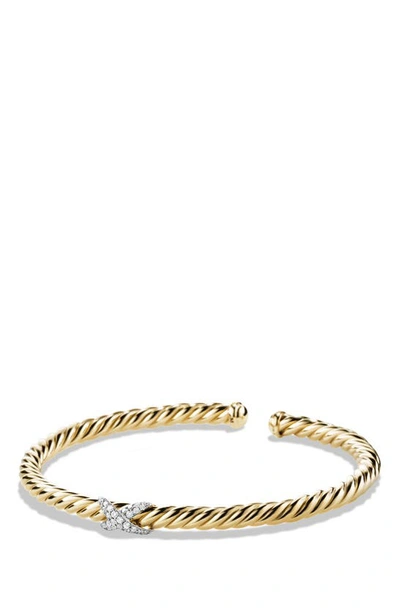 18kt Yellow Gold Diamond X Cable Spira Cuff Bracelet