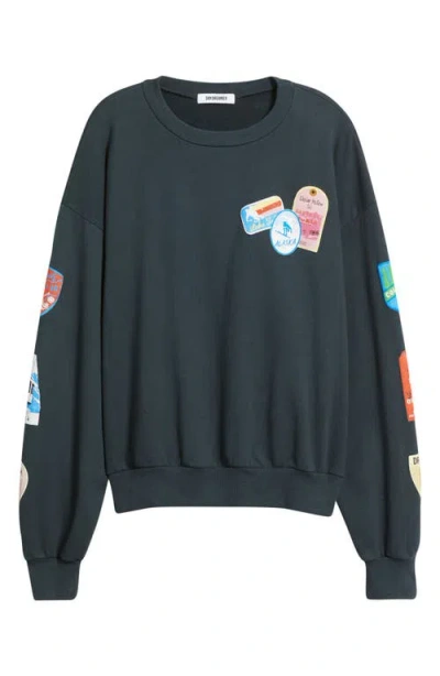 Ski Patch Pass Collector Oversize Cotton Sweatshirt In Gray