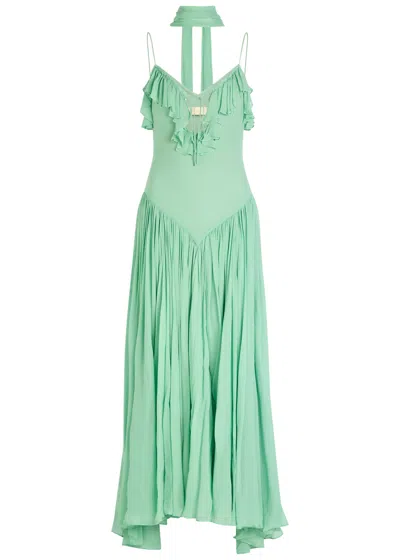 Hemera Ruffled Silk Scarf Maxi Dress In Green