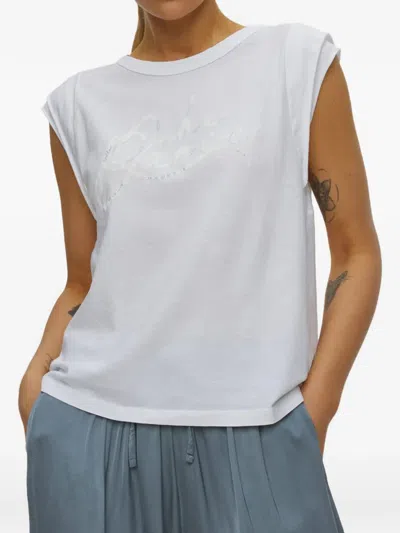 Rhinestone-embellished Cap-sleeve T-shirt In White