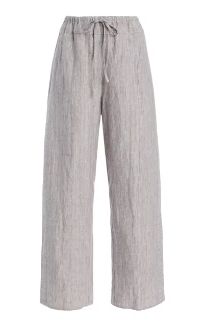 Double-waist Organic Linen Wide-leg Pants In Gray