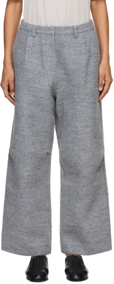 Gray Boiled Wool Trousers In Blue Grey