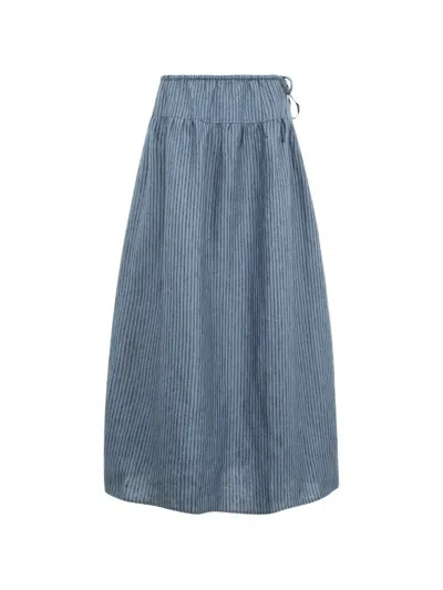 Striped-drawstring Maxi Skirt In Blue