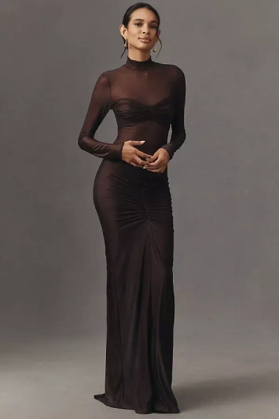 Jadienne Sheer Long-sleeve Maxi Dress In Brown