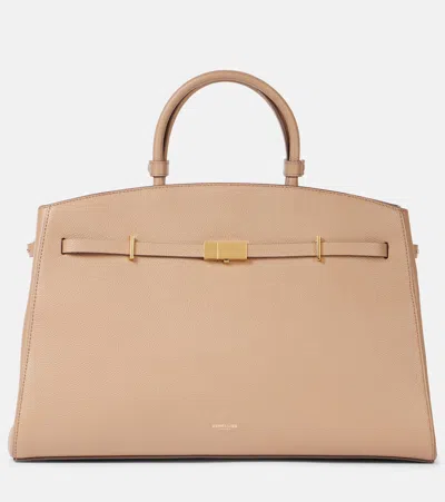 The Capri Leather-trimmed Canvas Tote In Neutral