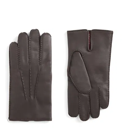 Leather Cashmere-lined Levens Gloves In Brown