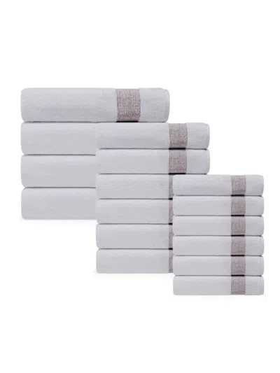 Pera 16-piece Striped Turkish Towels Set In Beige