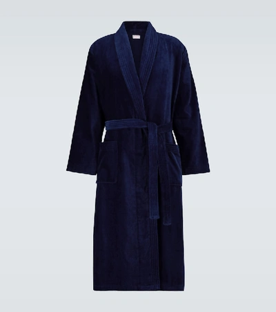 Cashmere-silk Piped Robe In Navy