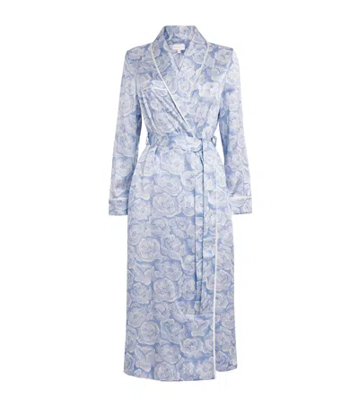 Silk Floral Robe In Blue
