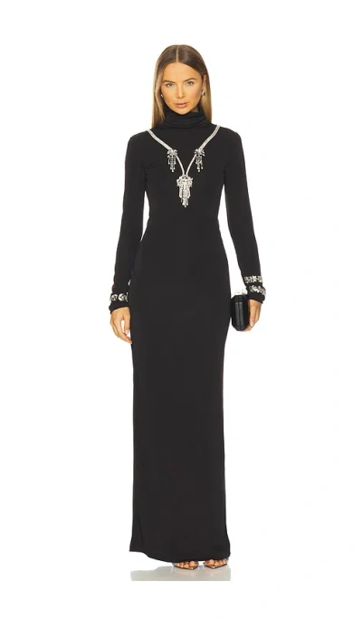 露背缀饰超长连衣裙