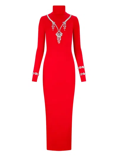 露背缀饰超长连衣裙