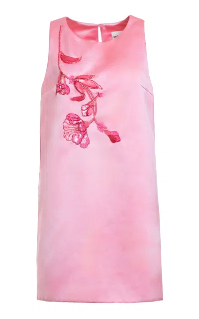 Duchesse Satin Flower Shift Mini Dress In Pink