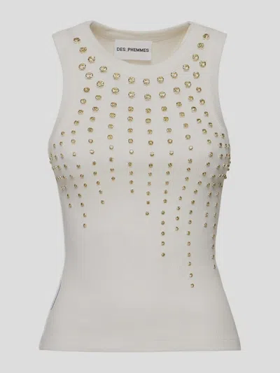 Des Phemmes Fitted Ribbed Tank Top With Rhinestone Embellishments In Green