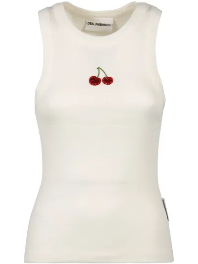 Embellished Ribbed Jersey Tank Top In White