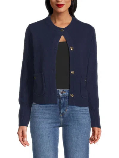 Women's Crewneck Rib-knit Cashmere Cardigan In Blue