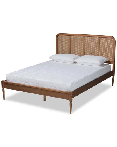 Elston Mid-century Modern Walnut Brown Finished Wood & Synthetic Rattan Queen Size Pl