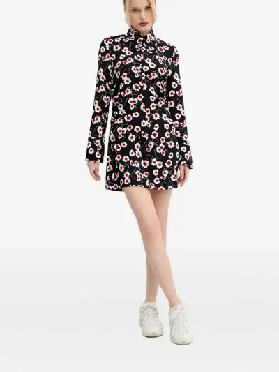 Yesh Floral Long Sleeve Mini Shirtdress In Red