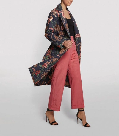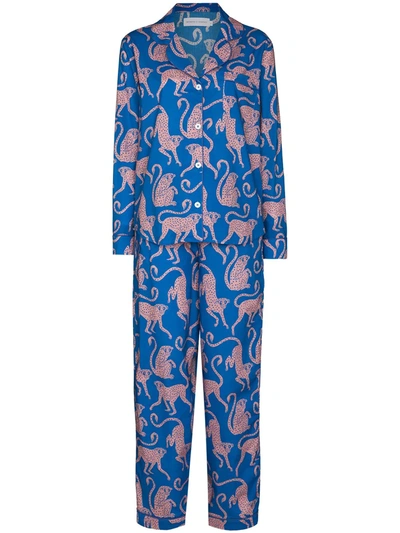 Print Square Neck Linen Nightgown In Plain Linen Lazuli